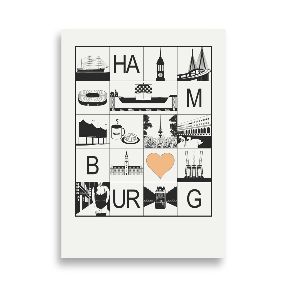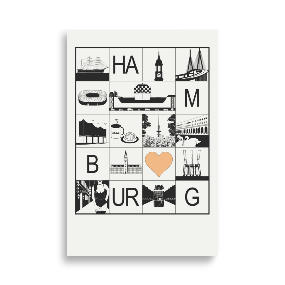 Stadtmosaik Hamburg (schwarz-weiß und sandbeiges Herz)