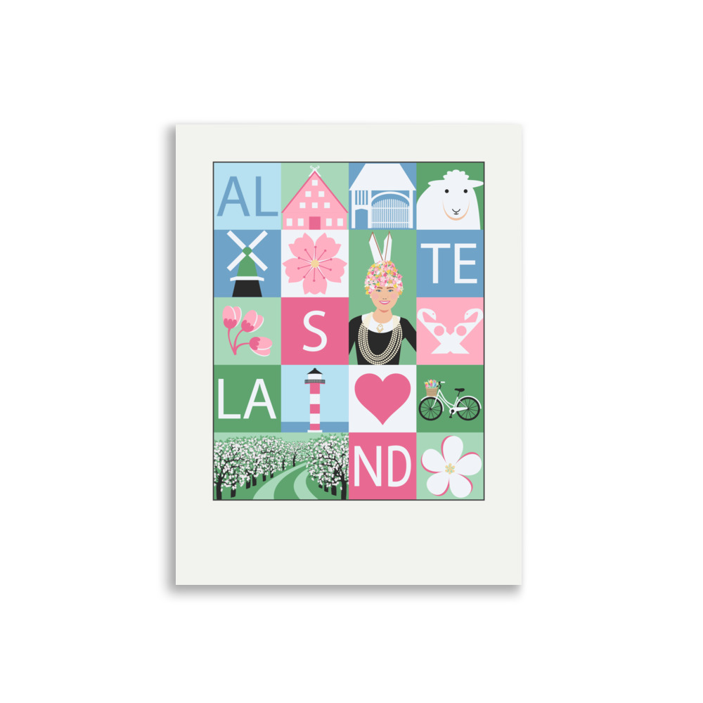 Was nicht fehlen darf, sind natürlich Blüten, Fachwerk, Schaf, Mühle, Giebelschwäne und die Altländer Blütenkönigin – alles, was den Reiz des Alten Landes ausmacht.