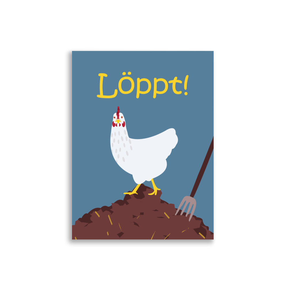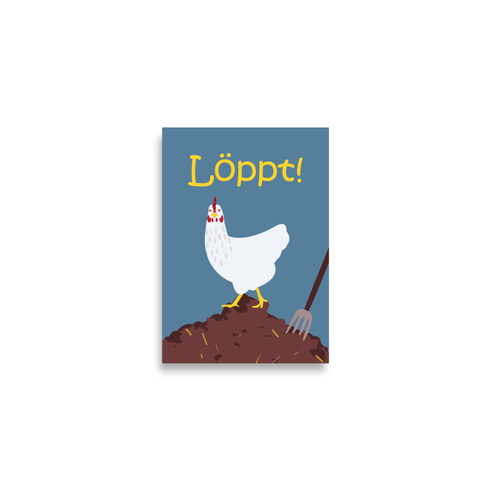 Dieses kleine Poster vermittelt norddeutschen Humor auf den Punkt: Gelassen, klar und mit einem Augenzwinkern. Das Huhn wirkt souverän und leicht frech zugleich und bringt ein Stück norddeutsches Lebensgefühl in jeden Raum.